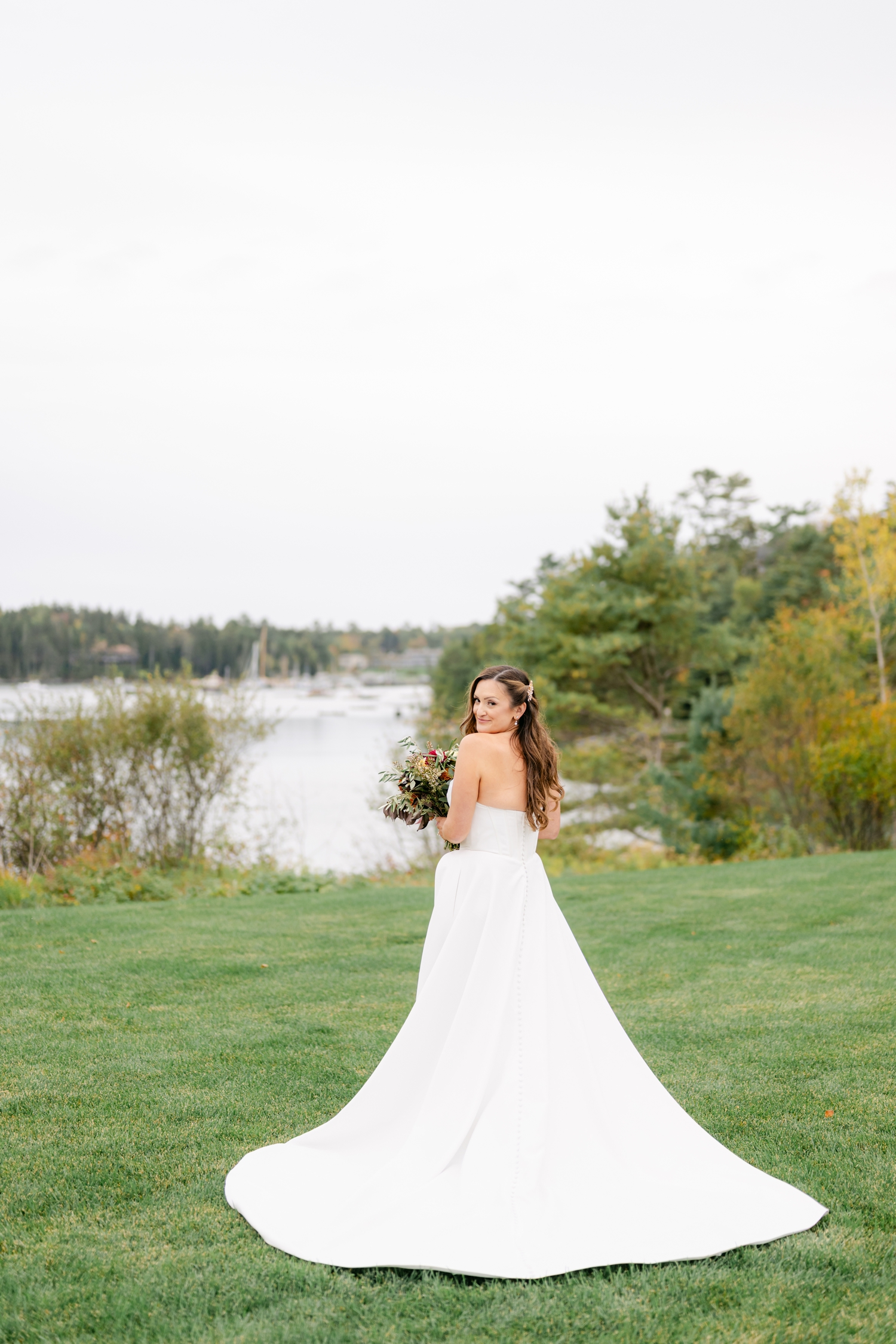 Venue: The Bar Harbor Club | Florist: The Bud Connection Ellsworth | Bridal Boutique: A&BÉ Bridal | Gown Designer: ALENA LEENA | Jewelry: Acadia Jewels | Rings: Korman Fine Jewelry | Bridesmaids: Jenny Yoo, Show Me Your Mumu | Hair & Makeup: Echo Salon | Hand-Painted Oyster Shell Place Cards: RebMade | Live Music: Larry Williams Band