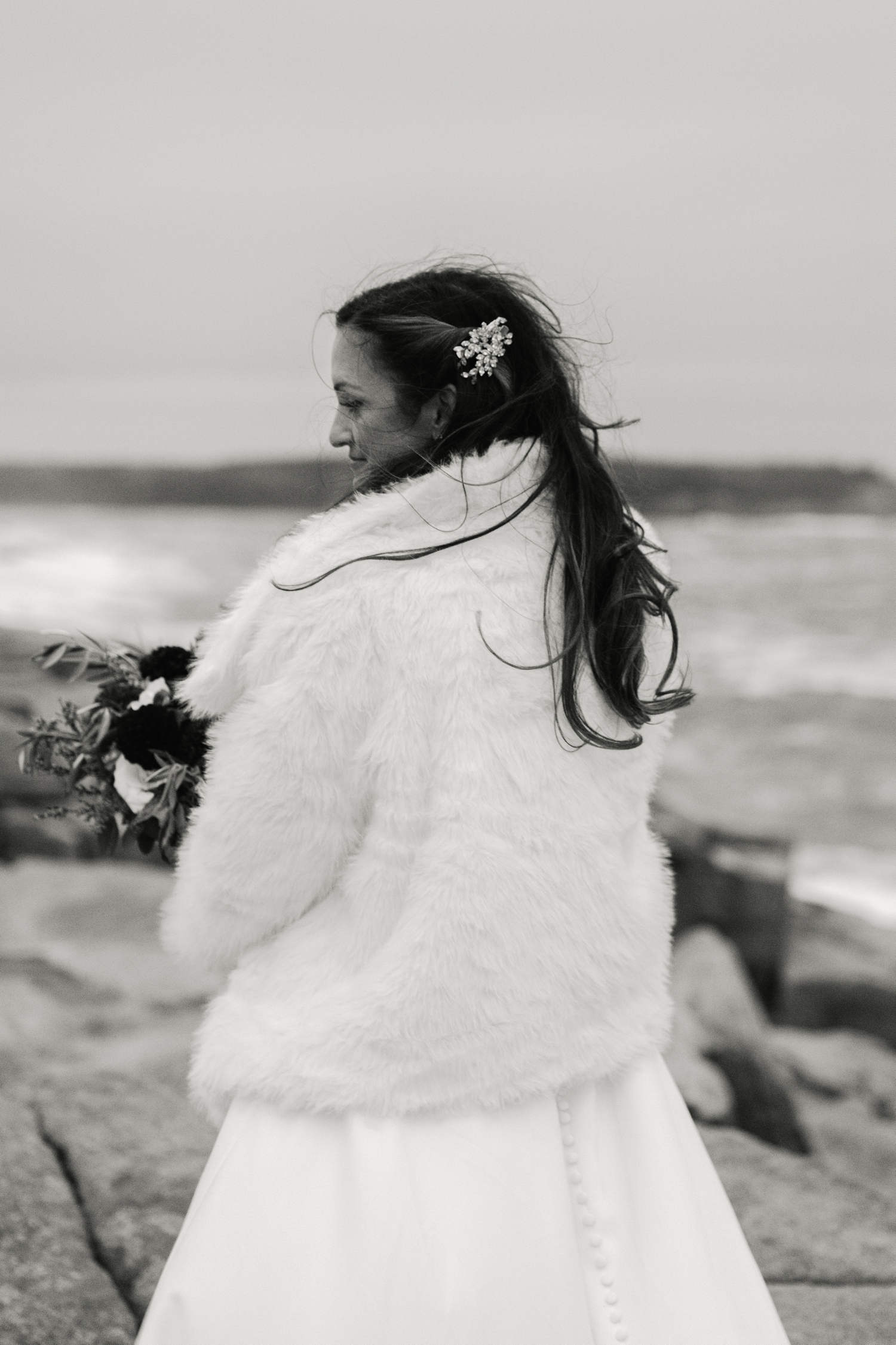 This couple opted out of getting ready coverage to spend more time on their first look, portraits, and travel time. Having over an hour of shooting time allowed us to move around and take our time for a variety of portraits on the rocks, and include their dogs! Although the fog was present on the ocean, it still made for some epic photos! Their ceremony took place at the Hancock Point Chapel and we did small groups of family portraits nearby at the town dock before they had a small gathering at The Crocker House for their reception.